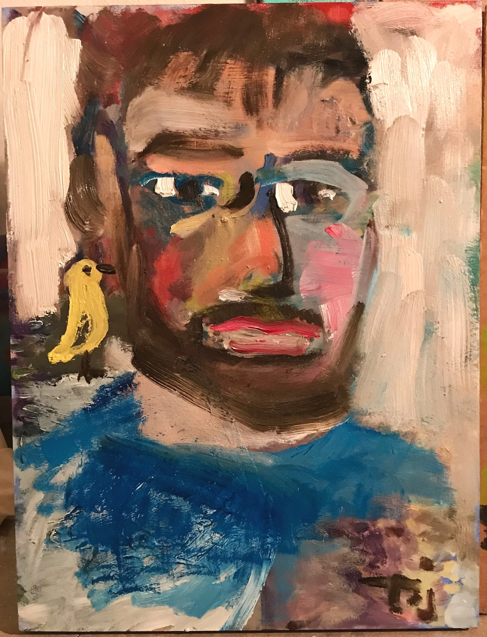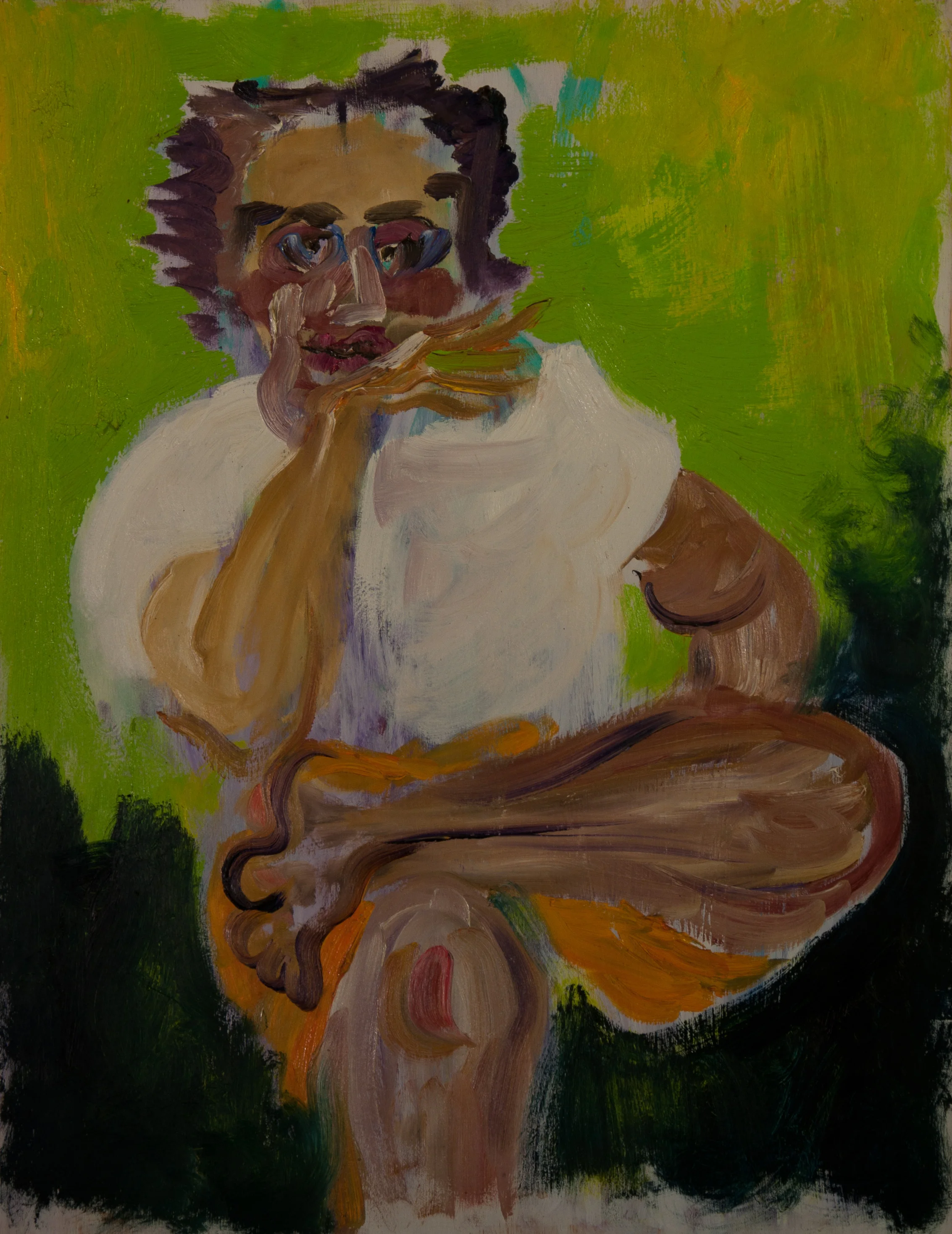 Brahm composes poetry in the park (with cinnamon toothpick)